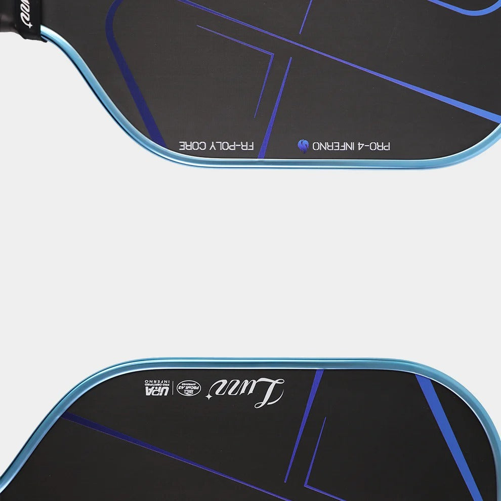 The Luzz Pro 4 Inferno Blue Blaze combines arctic-cool aesthetics with volcanic performance. Built on the same revolutionary MPP core and advanced foaming technology that made the Inferno legendary, the Blue Blaze Inferno features an Electroplated Paddle Edge, which boosts resistance to chips, scrapes, and wear from court hits, drops, or mishaps — giving your paddle a much longer lifespan without adding noticeable weight. This icy electric blue colorway delivers the same explosive power and precision that demands attention.